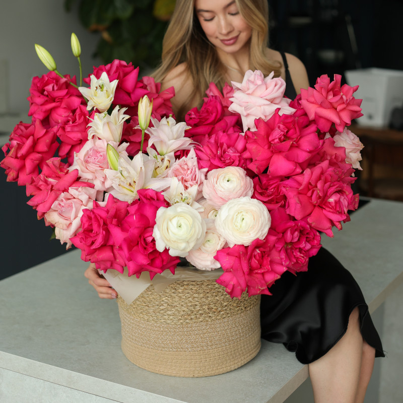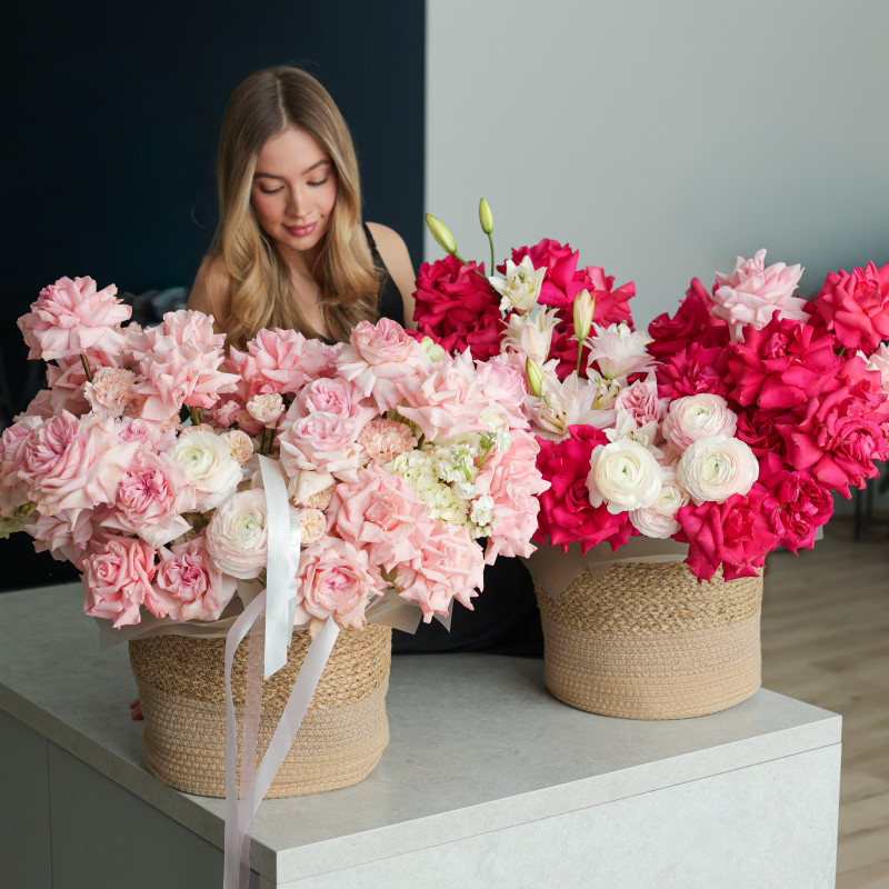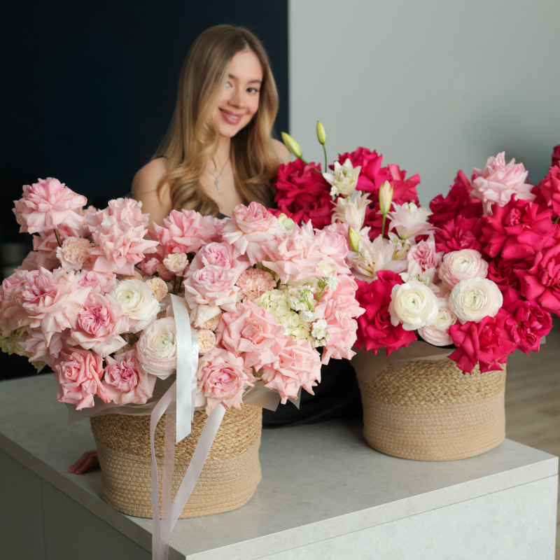 Вау-сет корзин с французскими розами на 14 февраля — идеальное сочетание нежности и страсти для самого романтичного дня года! В одной корзине — воздушная композиция с французскими розовыми розами и ранункулюсами, окутанная мягкой нежностью и романтикой. В другой — сердце из малиновых пионовидных роз, лилий и ранункулюсов, которое буквально пульсирует страстью и энергией любви. Вместе они создают незабываемый дуэт эмоций — от трепета нежности до огня чувств.