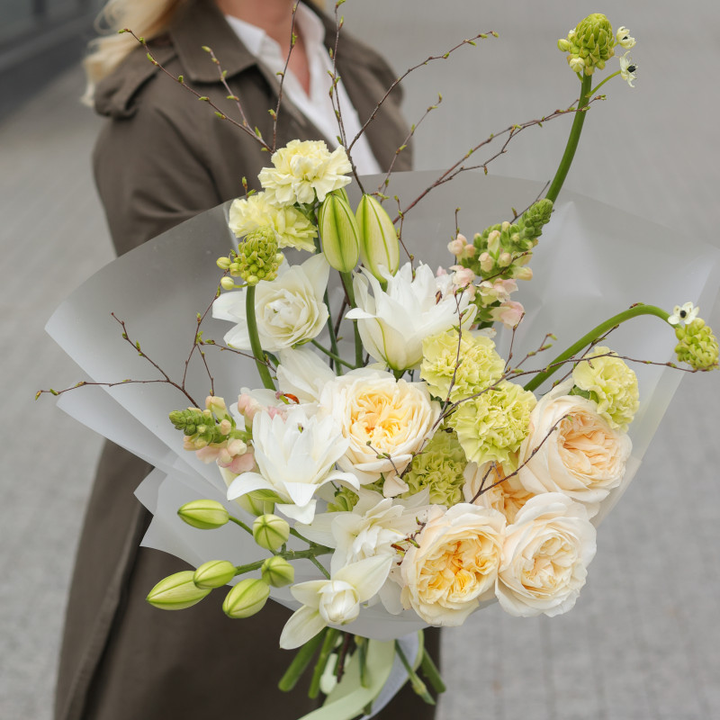 ✓ Аквапак или техническую вазу с водой для комфортной транспортировки букета;