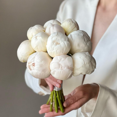 Букет невесты из молочно-белых пионов. Невероятно притягательная классическая круглая форма!