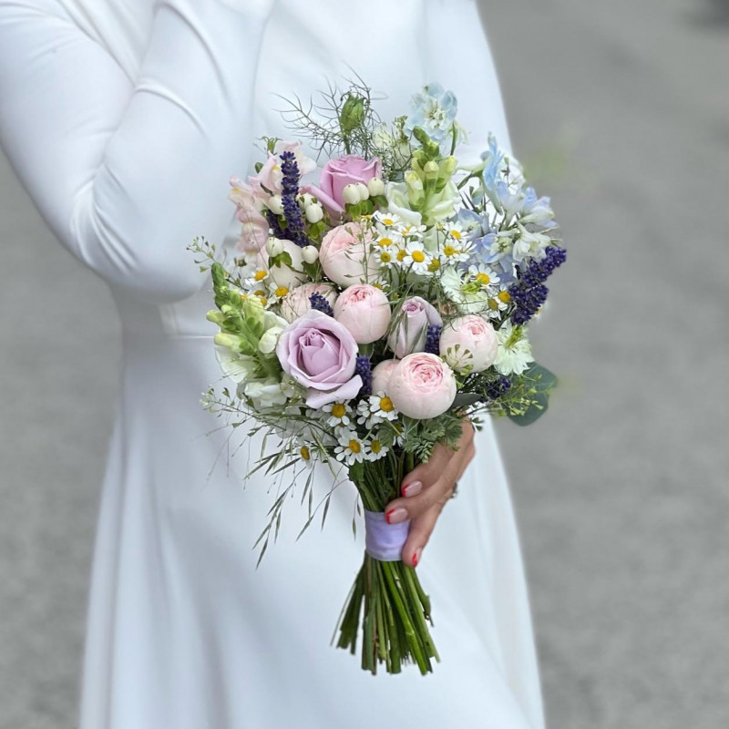 Нежный букет невесты с настроением летнего луга. Романтичное дополнение к очаровательному трогательному образу.