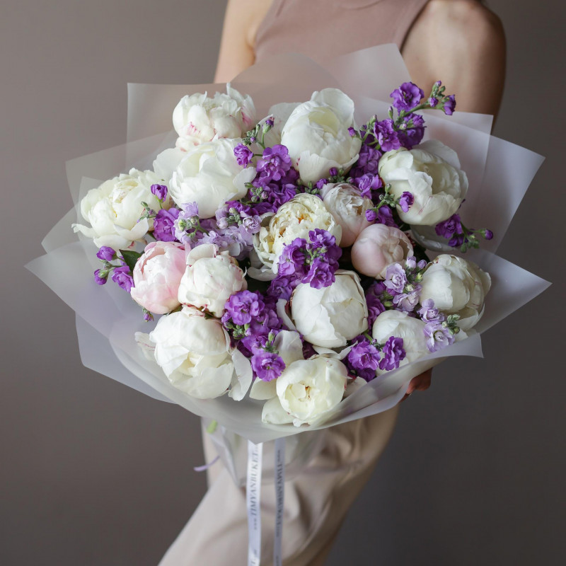 Дуо-букет ПИОНЫ-МАТТИОЛА, 15 шт