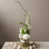 Пасхальная композиция живая с ранункулюсами, луковичными гиацинтами, пионовидными тюльпанами и нарциссами, травой, вербой и декоративными веточками. Декорирована фигуркой кролика и яйцами. Композиция выполнена в смешанной технике: грунтовые и срезанные цветы. Требует регулярного умеренного полива.