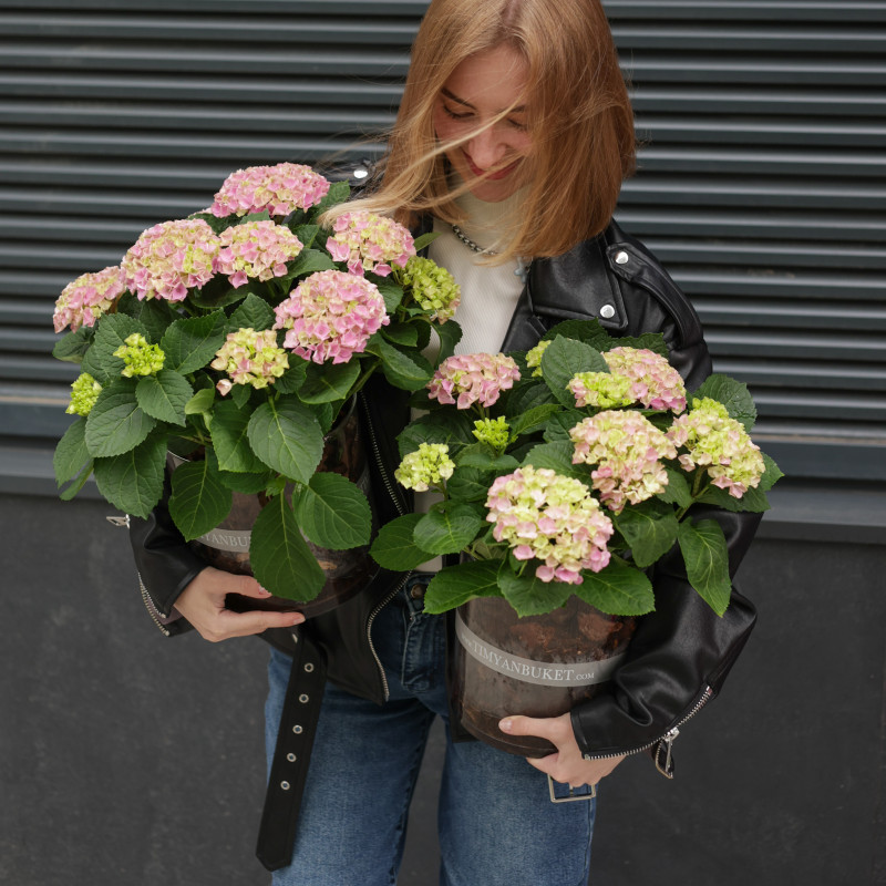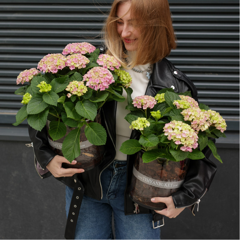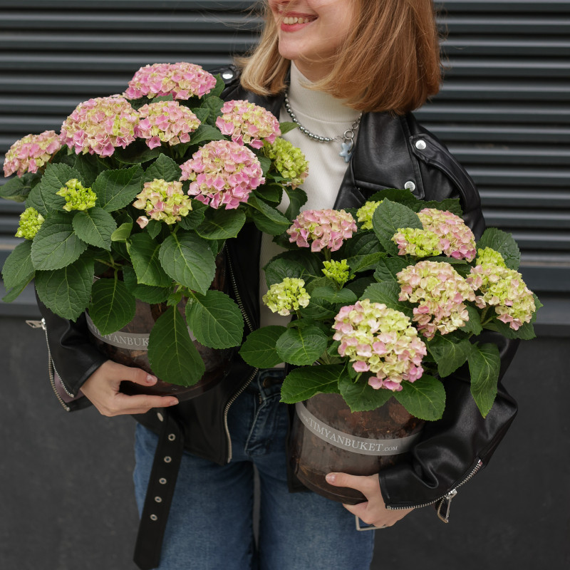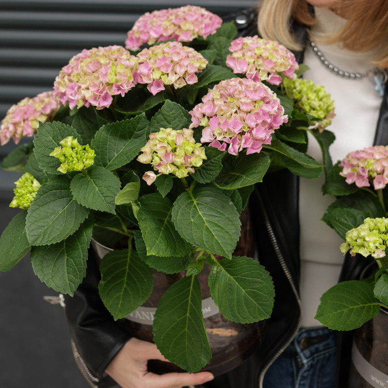 арт. 6107Эта садовая гортензия розово-зеленого цвета высотой около 30 см — не просто декоративное растение, а полноценный подарок, готовый к пересадке в открытый грунт. Цветы розового цвета контрастируют с темно-зелеными листьями.