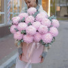 Коробка из 19 розовых хризантем с эвкалиптом — трогательный и свежий подарок, который долго сохраняет красоту. Нежные розовые хризантемы символизируют заботу и внимание, а ароматный эвкалипт добавляет лёгкую зелёную ноту и изысканный акцент. Элегантная розовая коробка с лентами делает композицию готовым подарком для любого случая: дня рождения, благодарности, романтического жеста или приятного сюрприза без повода.