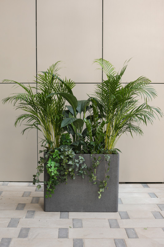 Сет экзотических растений в высоком прямоугольном кашпо