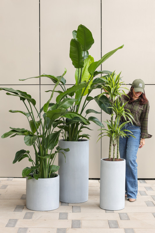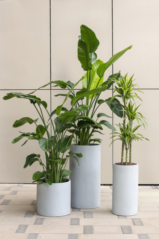 Сет комнатных растений в бетонных кашпо-цилиндрах, 3 шт