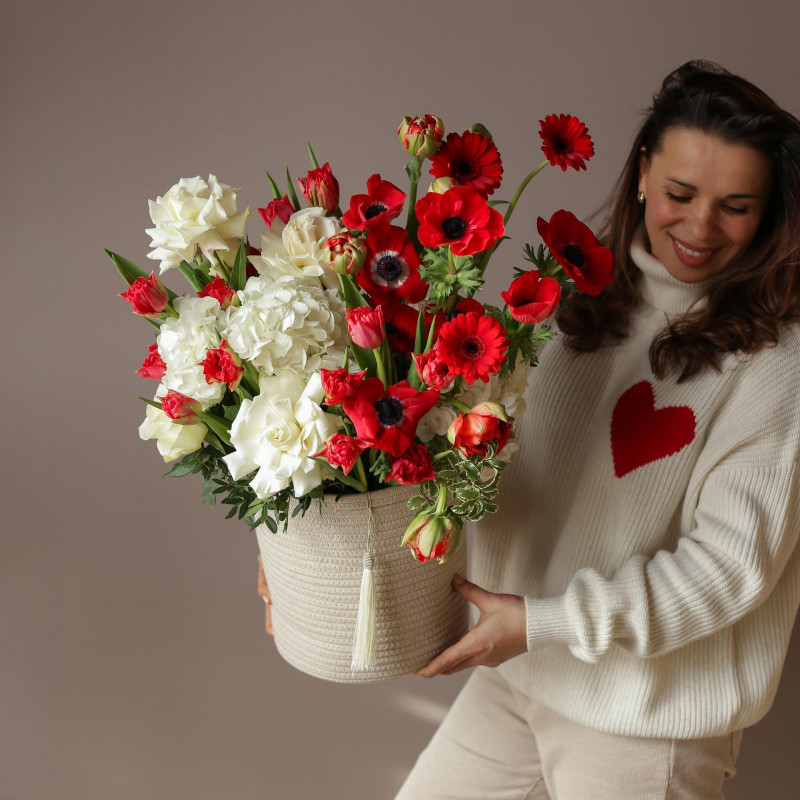 Восхитительный тандем красного и белого в авторской композиции для ваших пылких признаний.