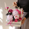 Нежная пудрово-ягодная композиция в ящичке.
