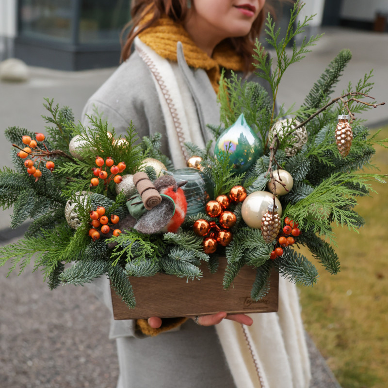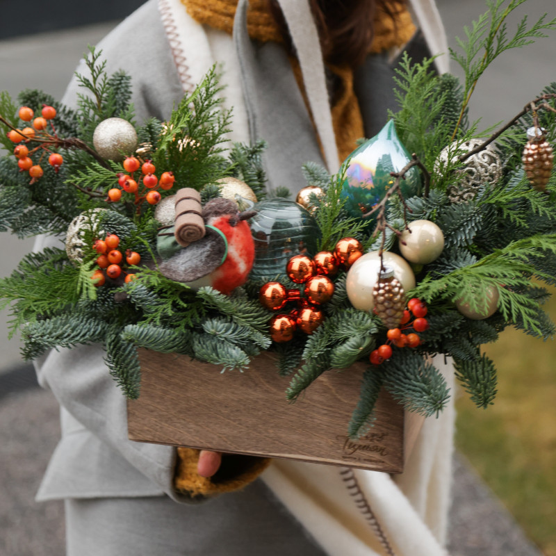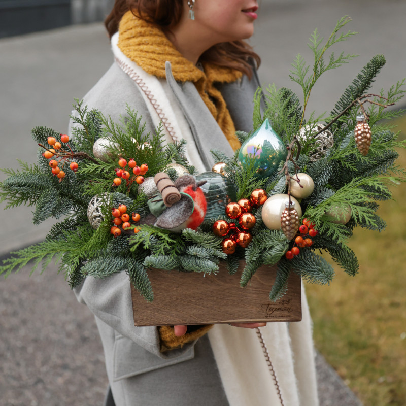 Новогодние композиции созданы вручную дизайнерами студии Тимьян.Многие работы в единственном экземпляре - эксклюзив!