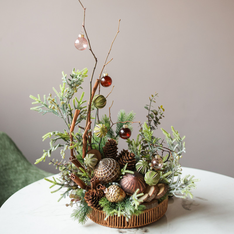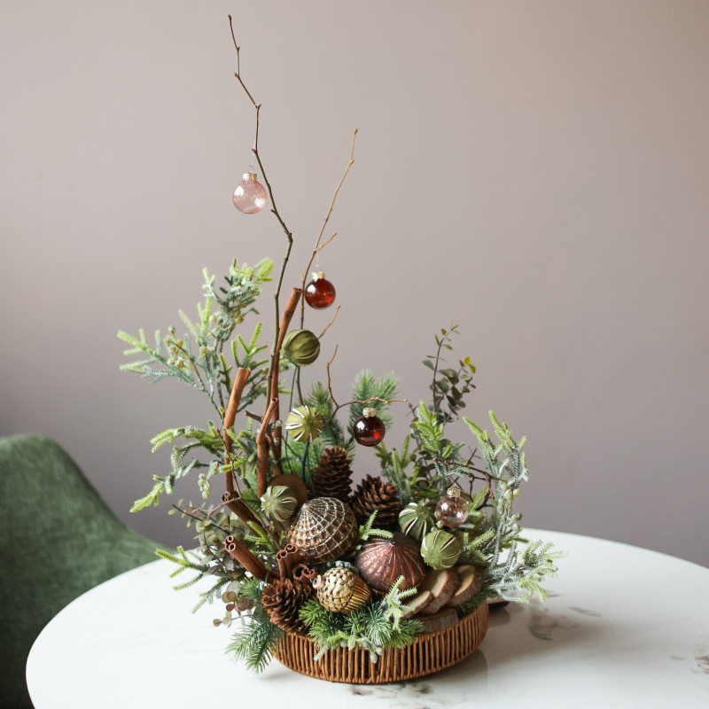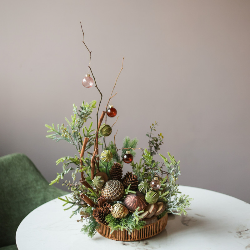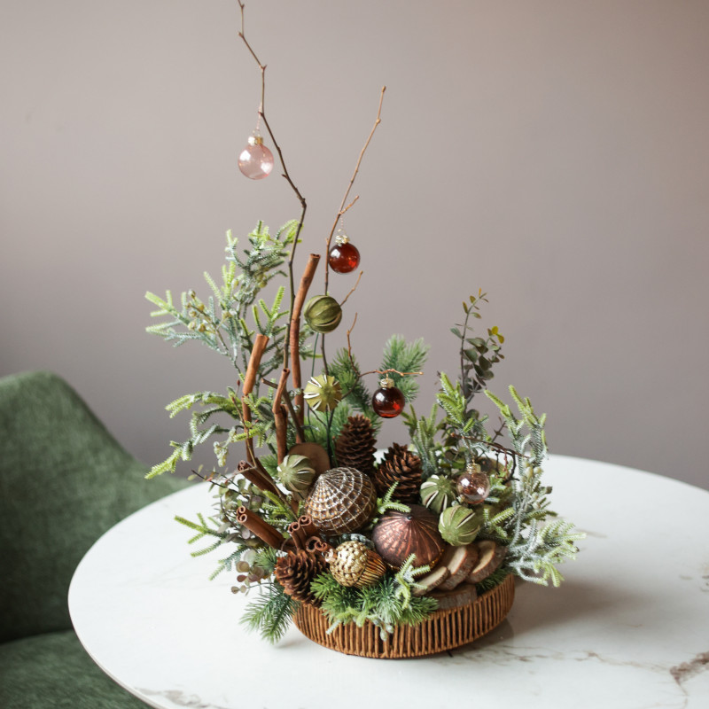 Новогодние композиции созданы вручную дизайнерами студии Тимьян.Многие работы в единственном экземпляре - эксклюзив!