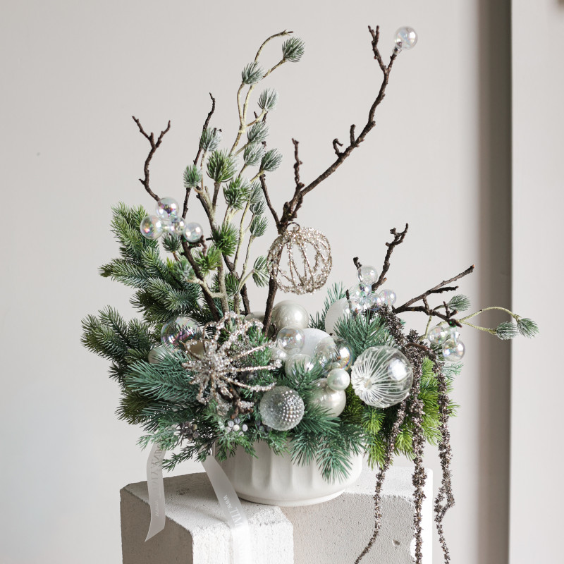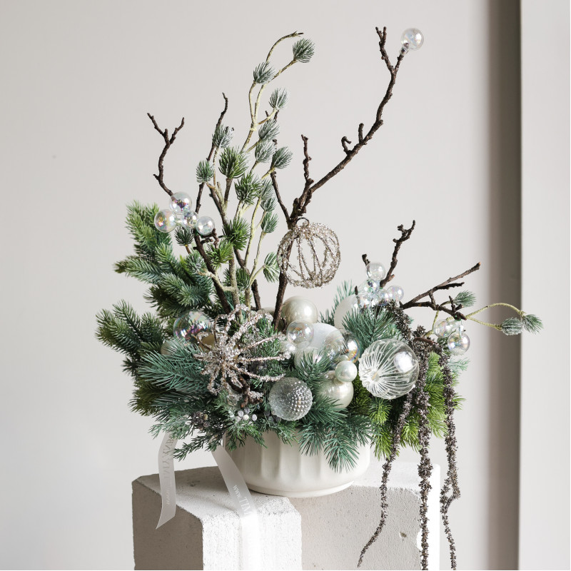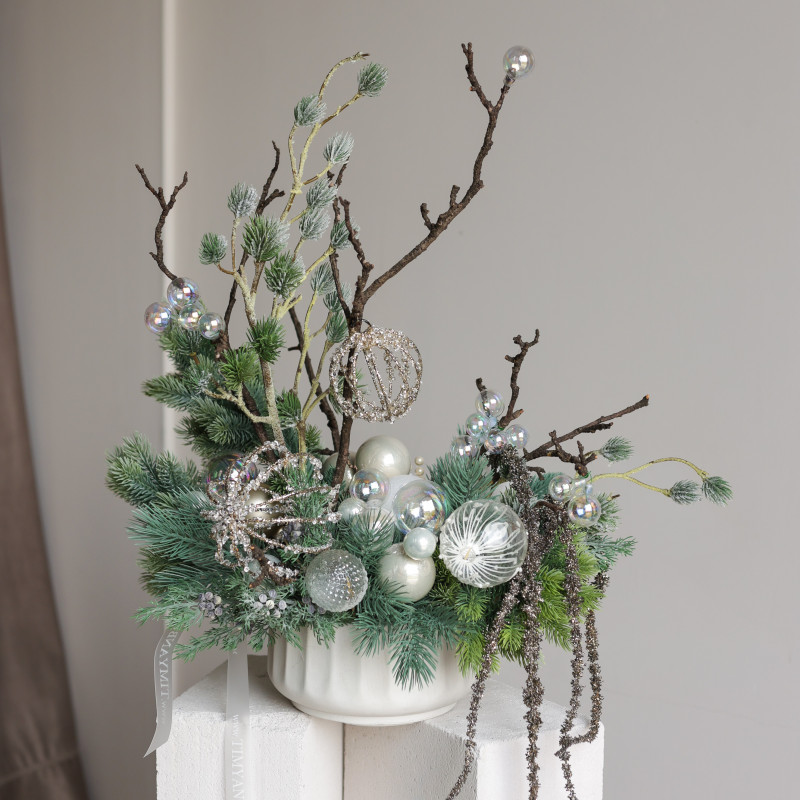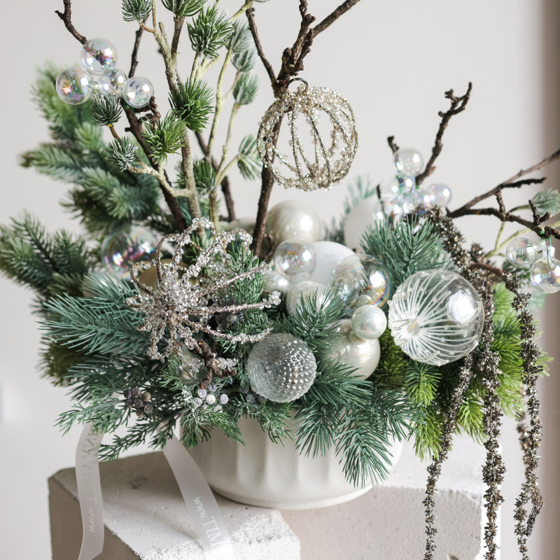 111. Композиция с авторским бело-серебряным сверкающим декором