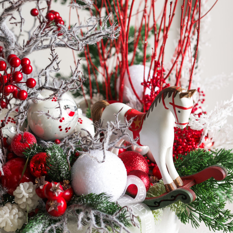096. Композиция с красно-белым декором с лошадкой и деревом