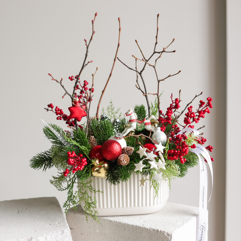 Новогодние композиции созданы вручную дизайнерами студии Тимьян.Многие работы в единственном экземпляре - эксклюзив!