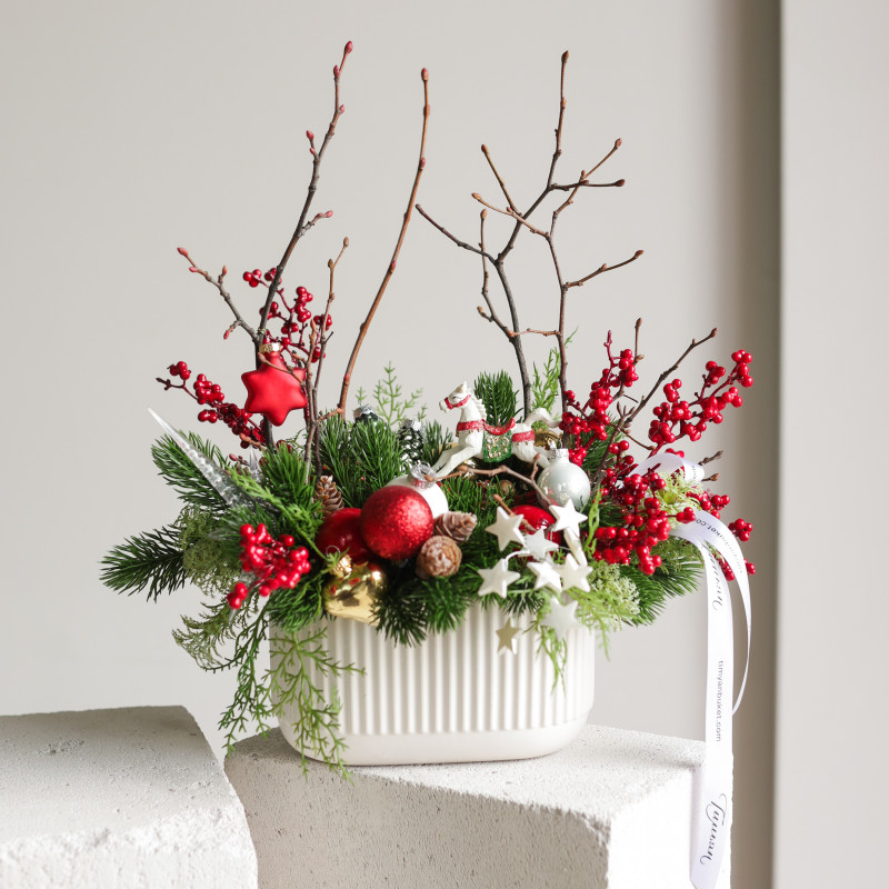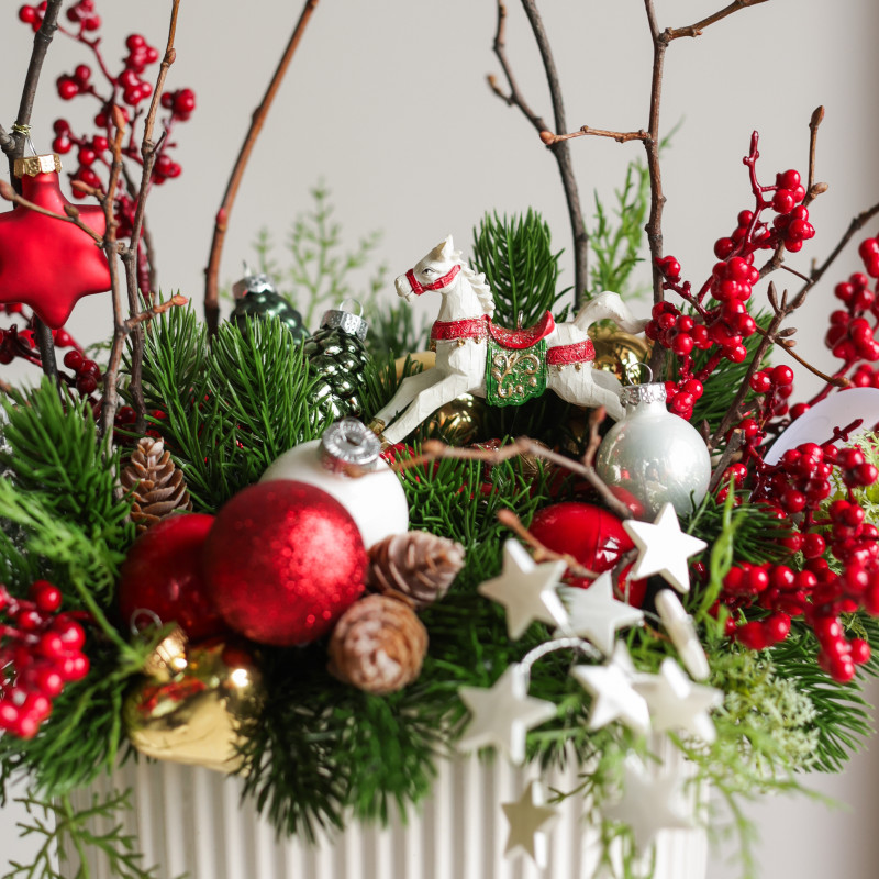 101. Композиция с красными ягодками и фигуркой лошадки