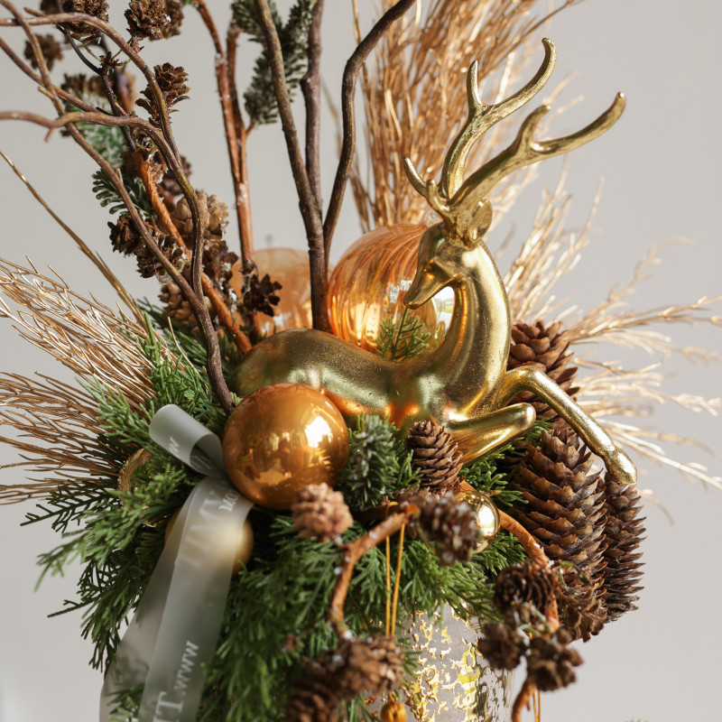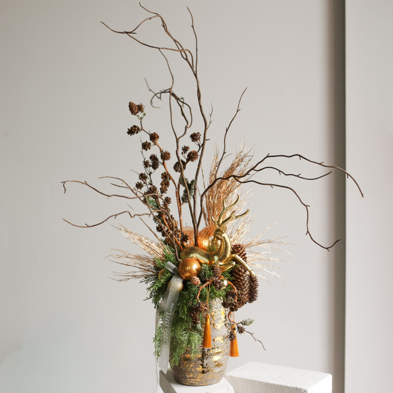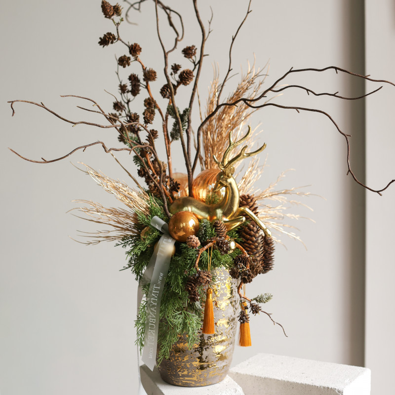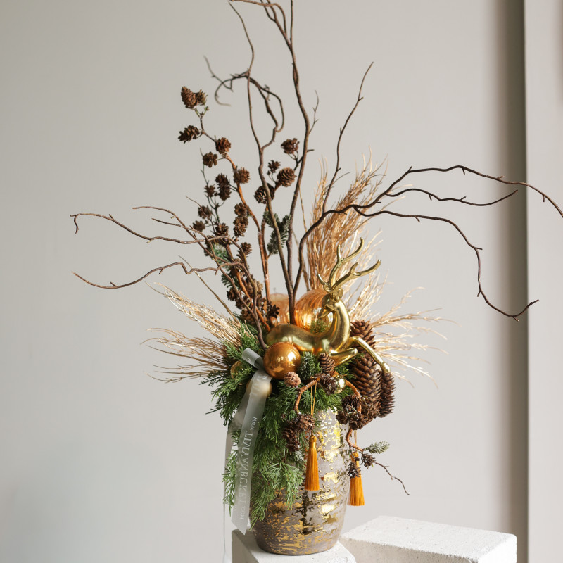 104. Композиция высокая в вазе с ветками и золотым оленем