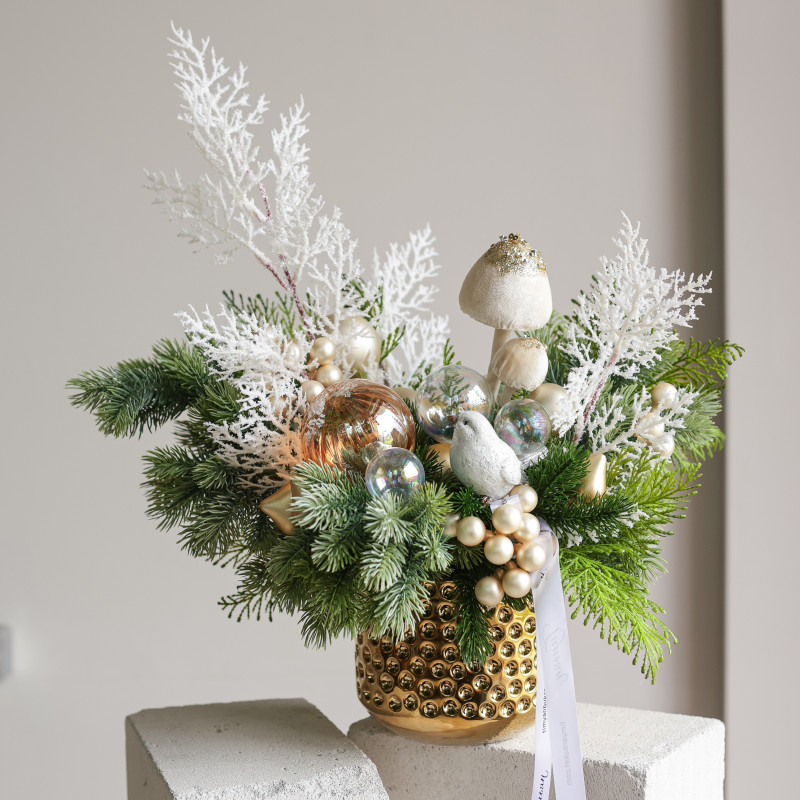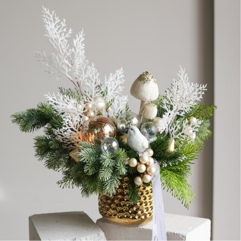 Новогодние композиции созданы вручную дизайнерами студии Тимьян.Многие работы в единственном экземпляре - эксклюзив!