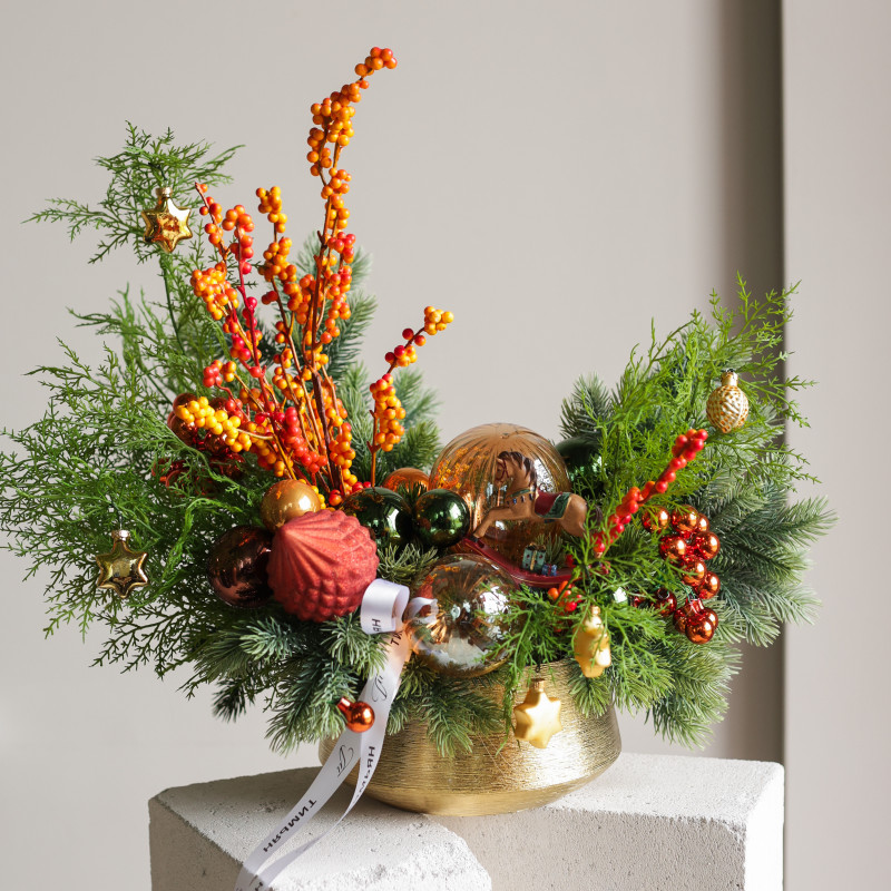 Новогодние композиции созданы вручную дизайнерами студии Тимьян.Многие работы в единственном экземпляре - эксклюзив!