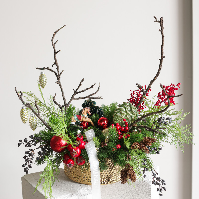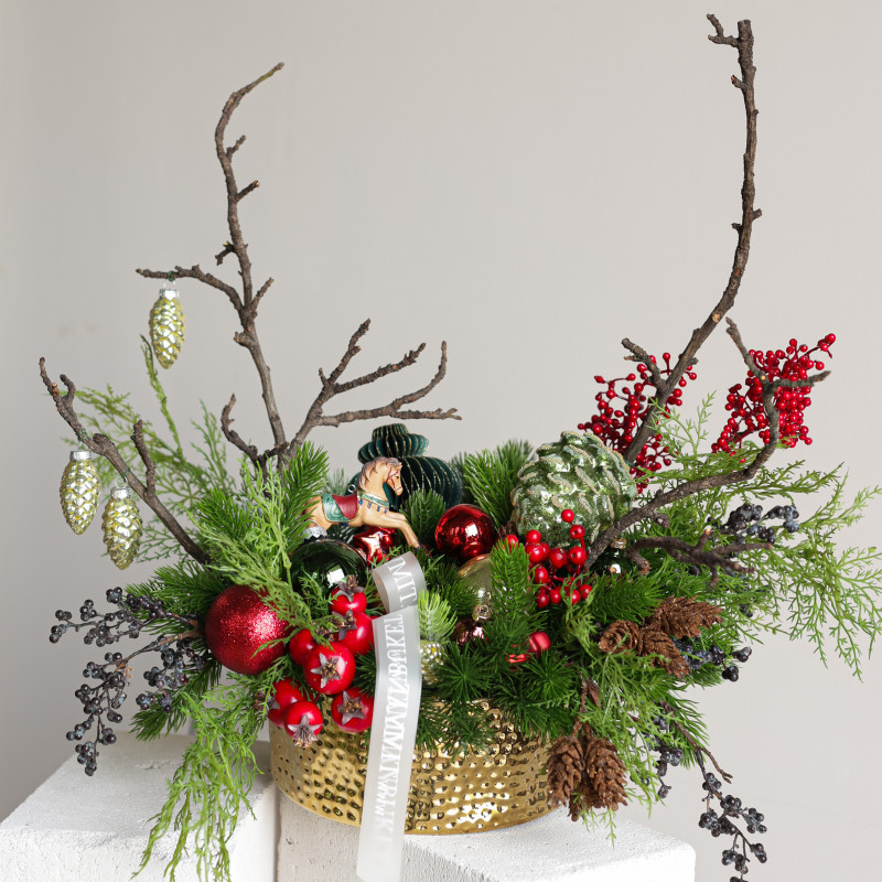 Новогодние композиции созданы вручную дизайнерами студии Тимьян.Многие работы в единственном экземпляре - эксклюзив!