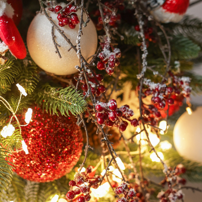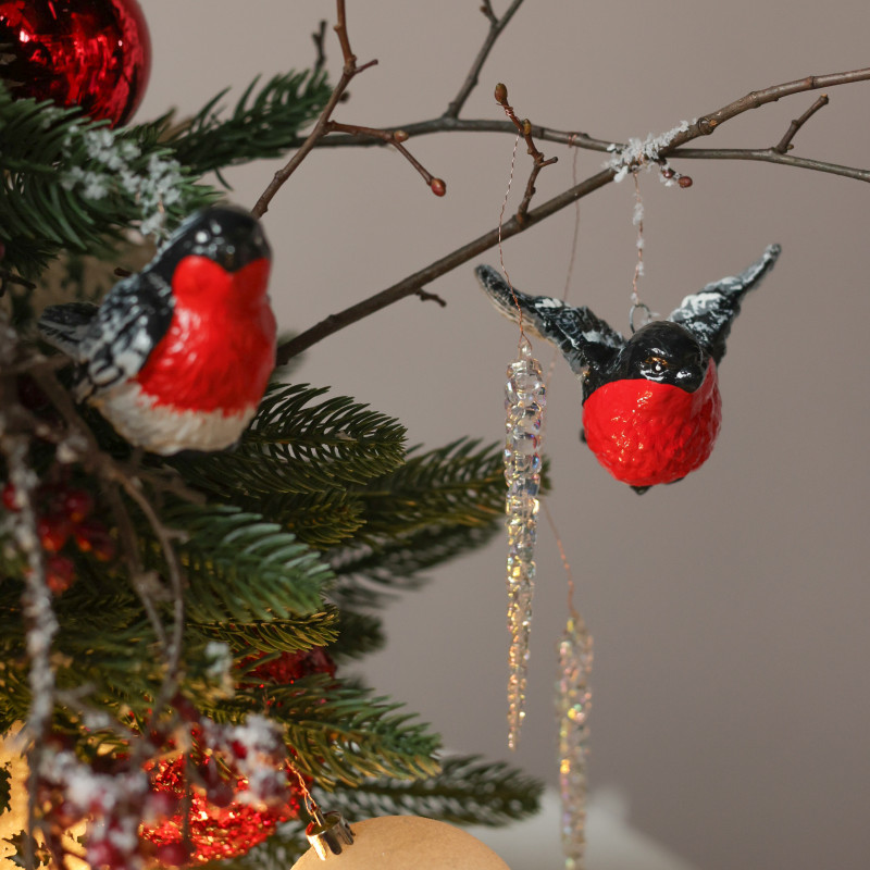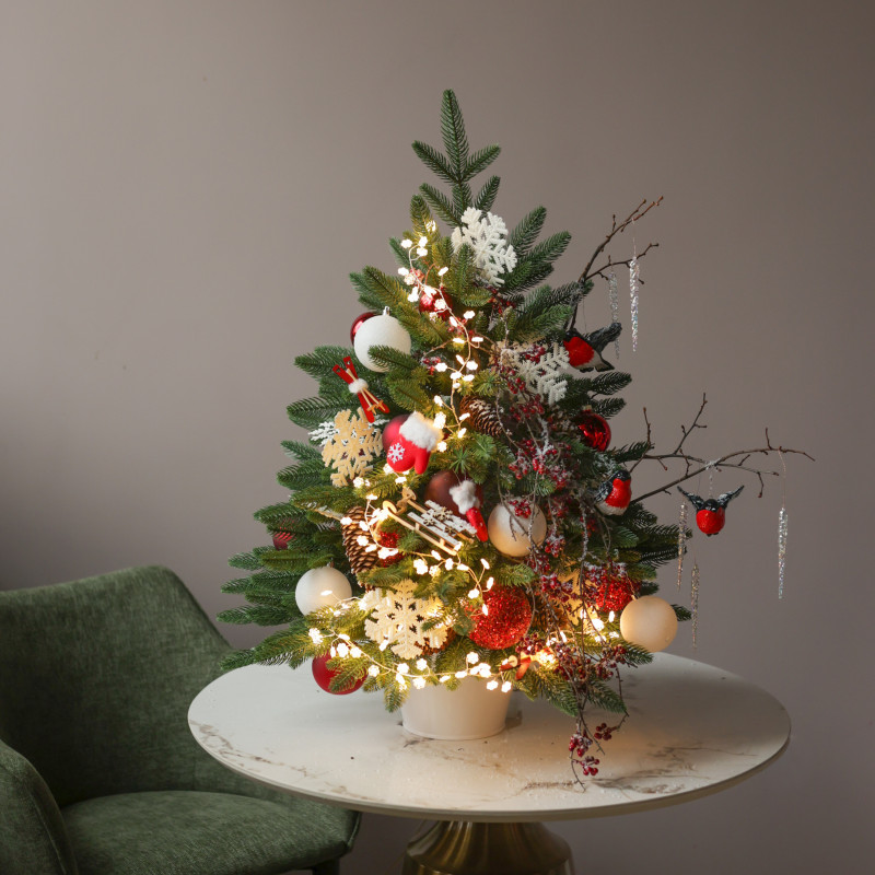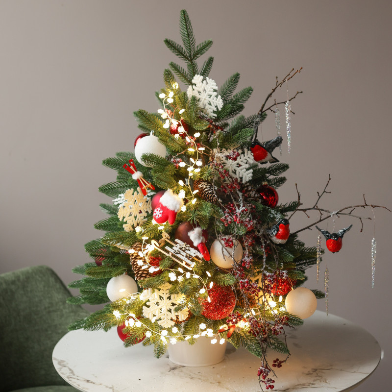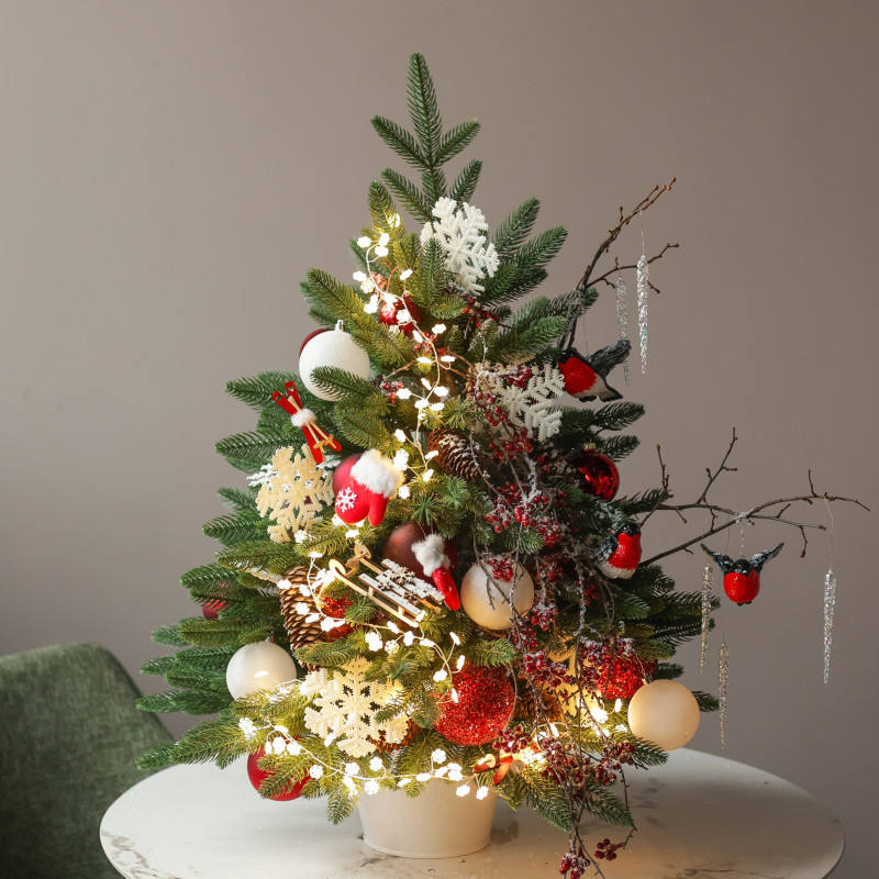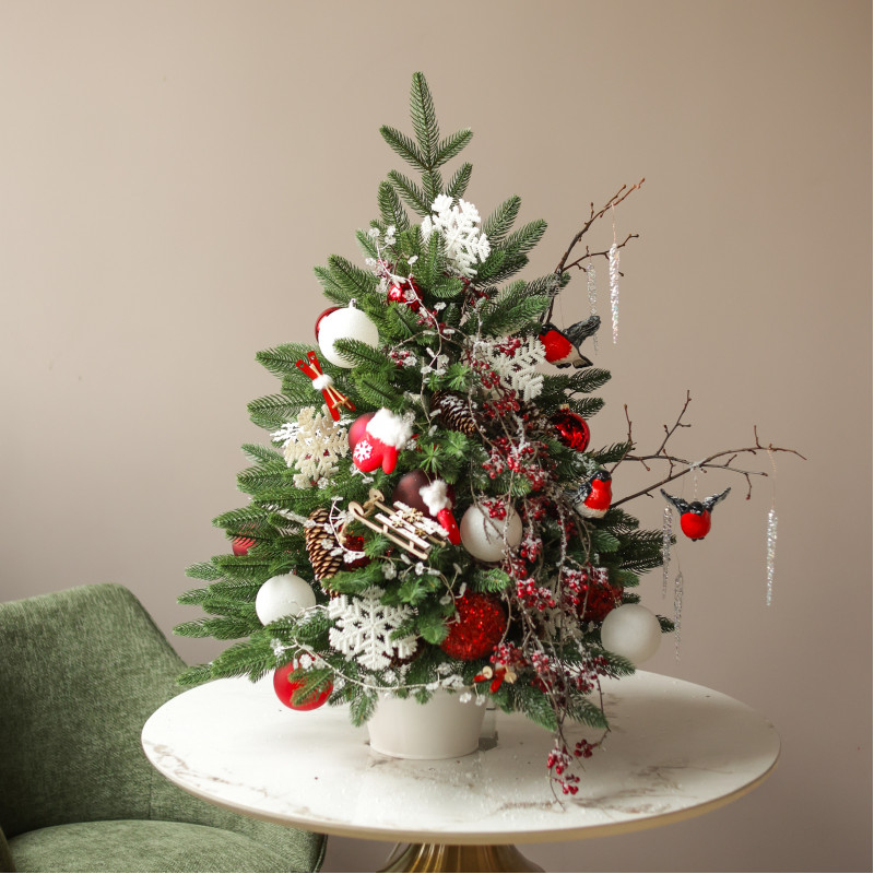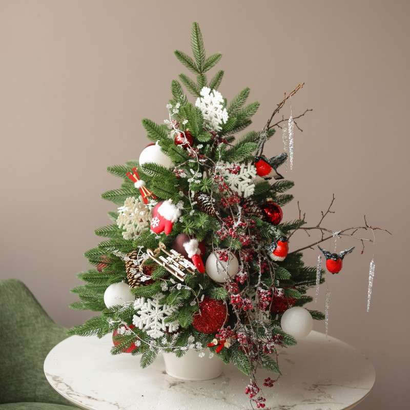 Елка эксклюзивная, СНЕГИРИ, с огнями, авторский декор, ручная работа - 50 см