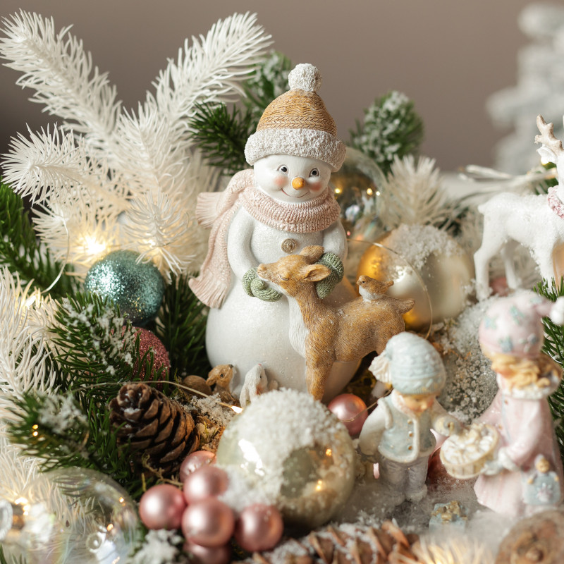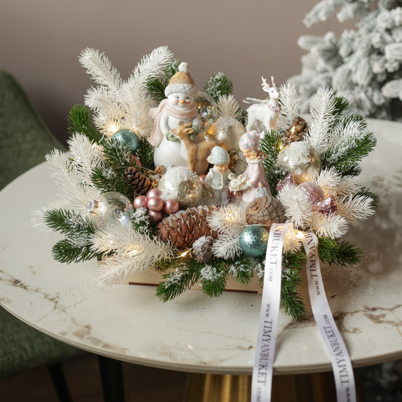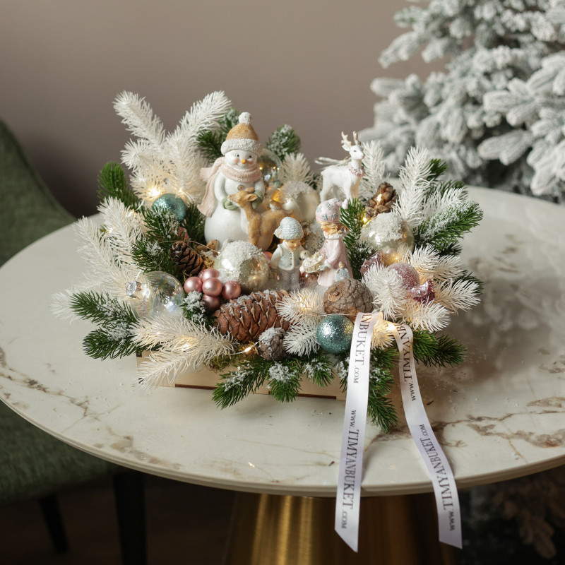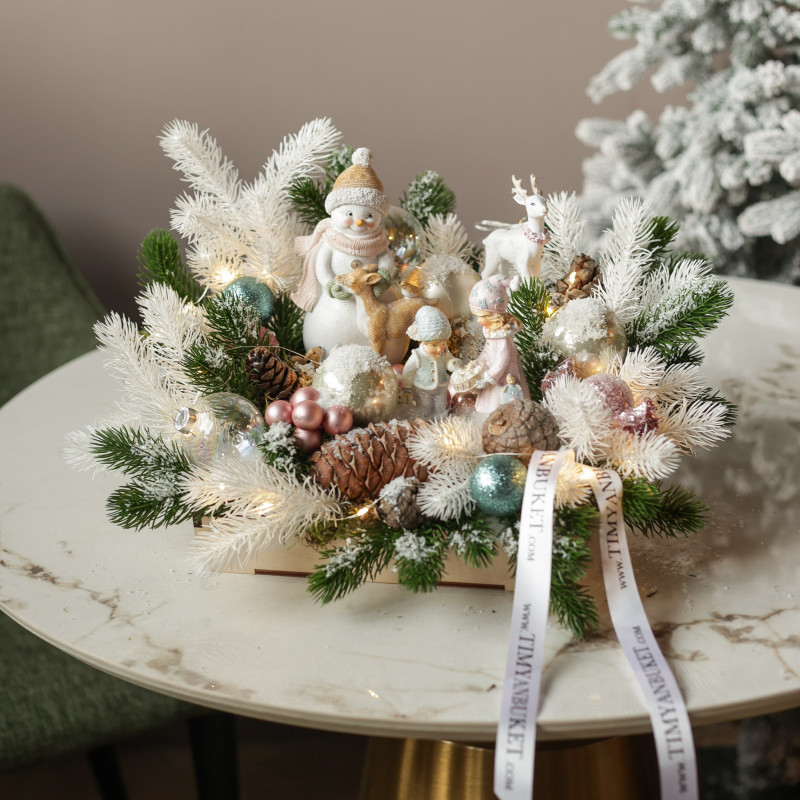 047. Новогодняя композиция со снеговиком, детками и шишками
