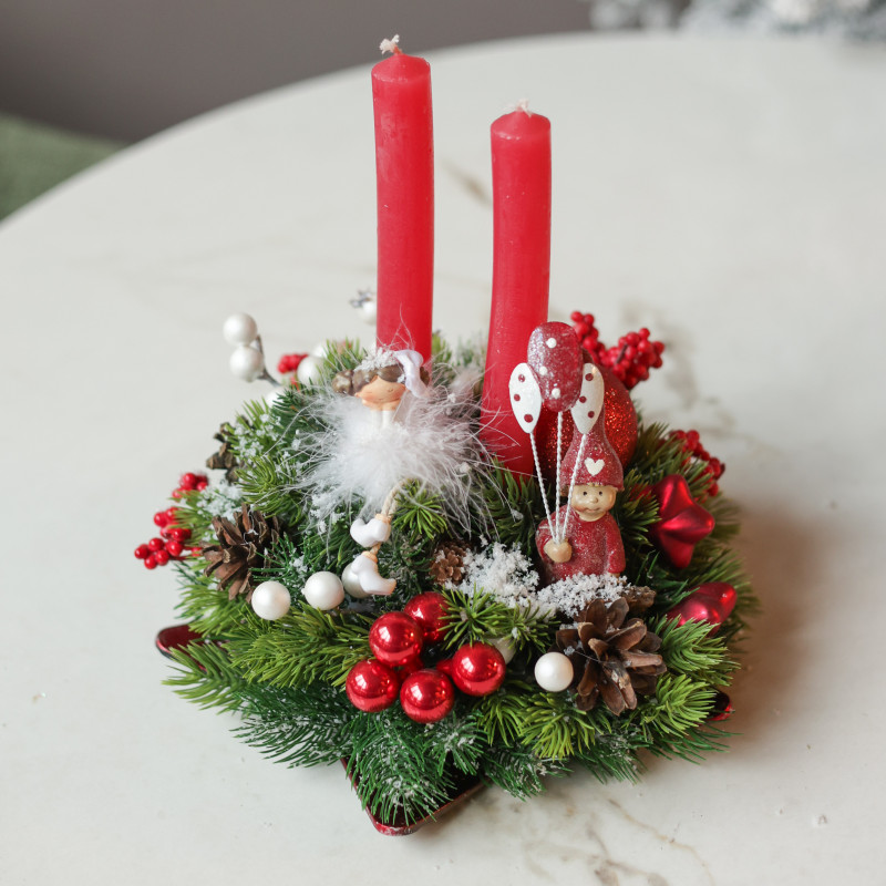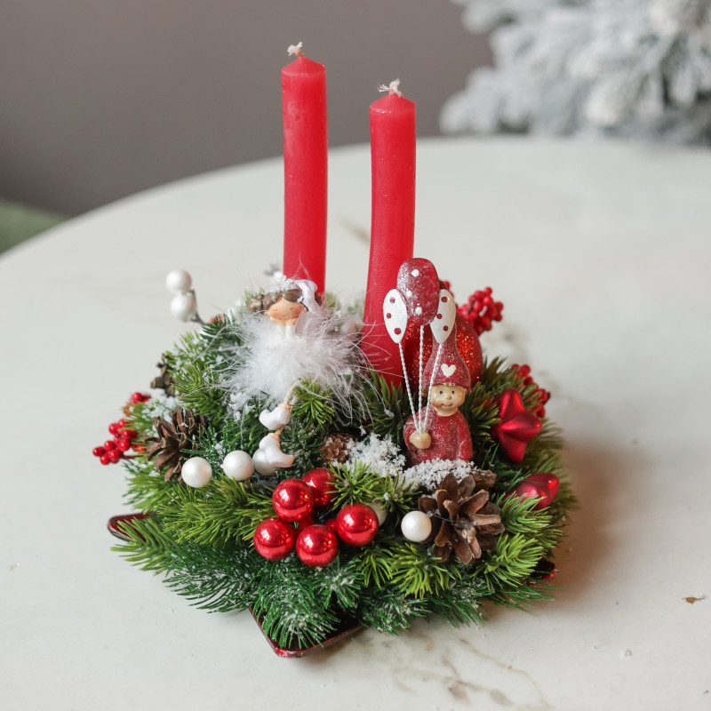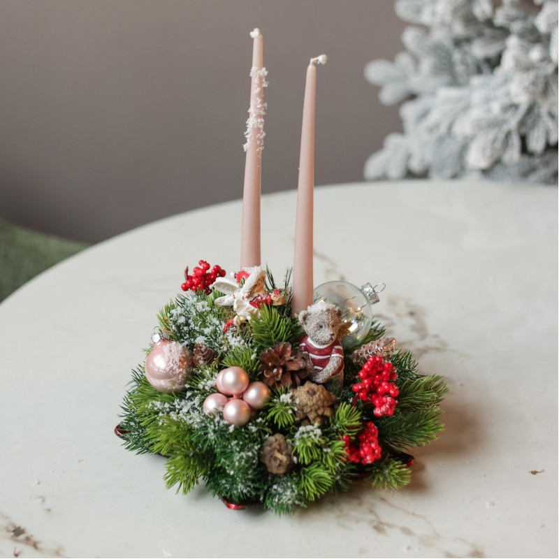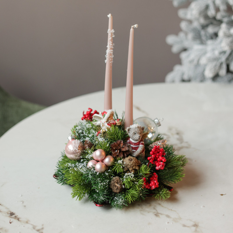 087. Новогодняя композиция со свечами и милым декором с фигурками животных (в асс.)
