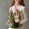 Авторская композиция из весенних цветов в дизайнерском стекле в ассортименте!