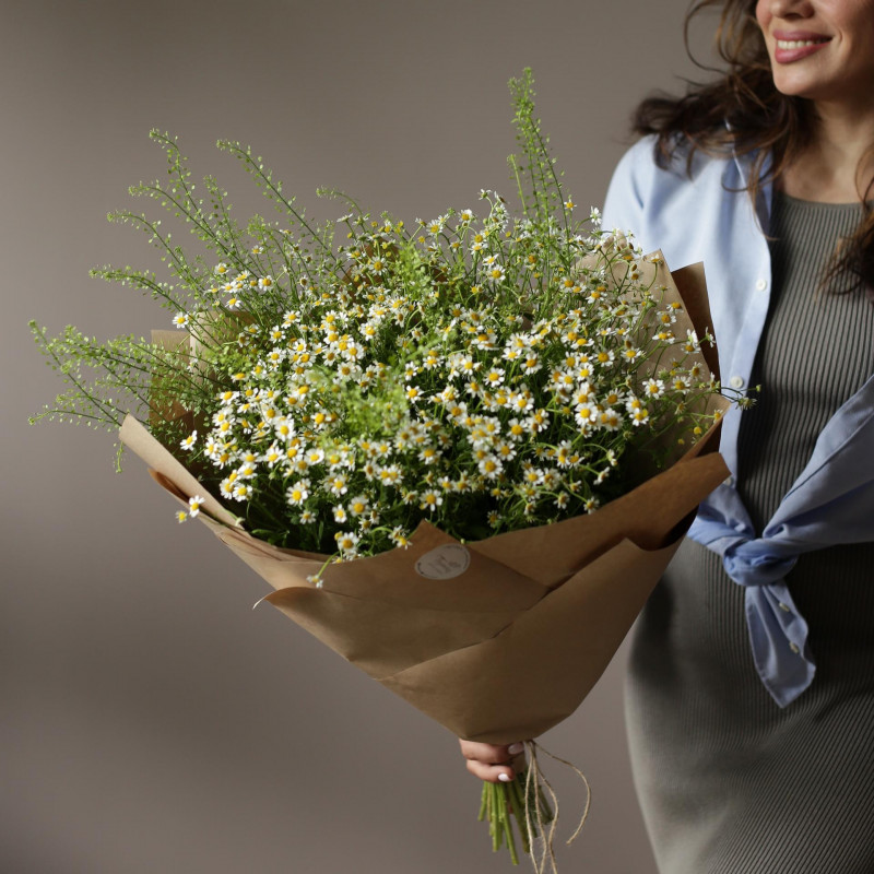 Охапка луговой ромашки с зеленью – кусочек лета в каменных джунглях города, который вернет вас на природу и подарит