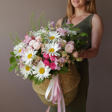Авторская композиция с ромашками в необычной корзине – лето на кончиках пальцев!