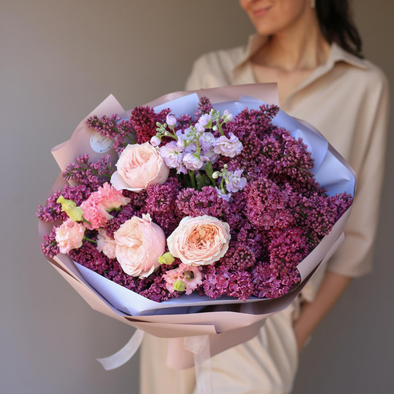 Букет РОЗЫ-СИРЕНЬ, с маттиолой