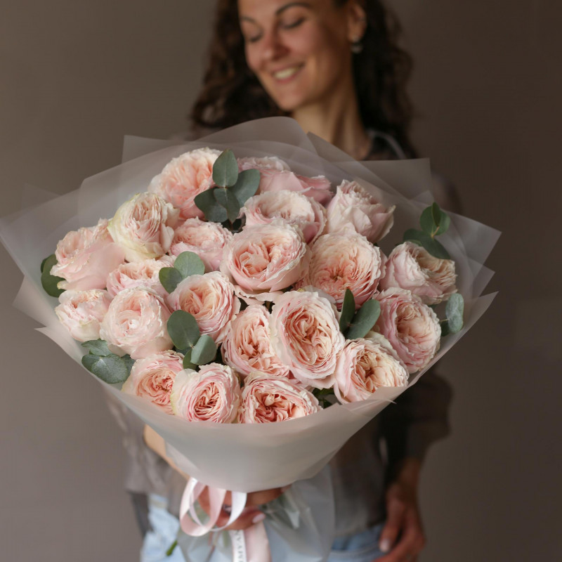 Погрузитесь в атмосферу нежности и утончённости с букетом из 21 пудровых роз сорта Цумуги. Эти роскошные розы славятся своими крупными, густыми бутонами и мягкими пудровыми оттенками, которые подчёркивают изысканность и элегантность композиции. Идеально подходит для подарка на день рождения, годовщину, свадьбу или просто для того, чтобы выразить свою заботу и внимание.