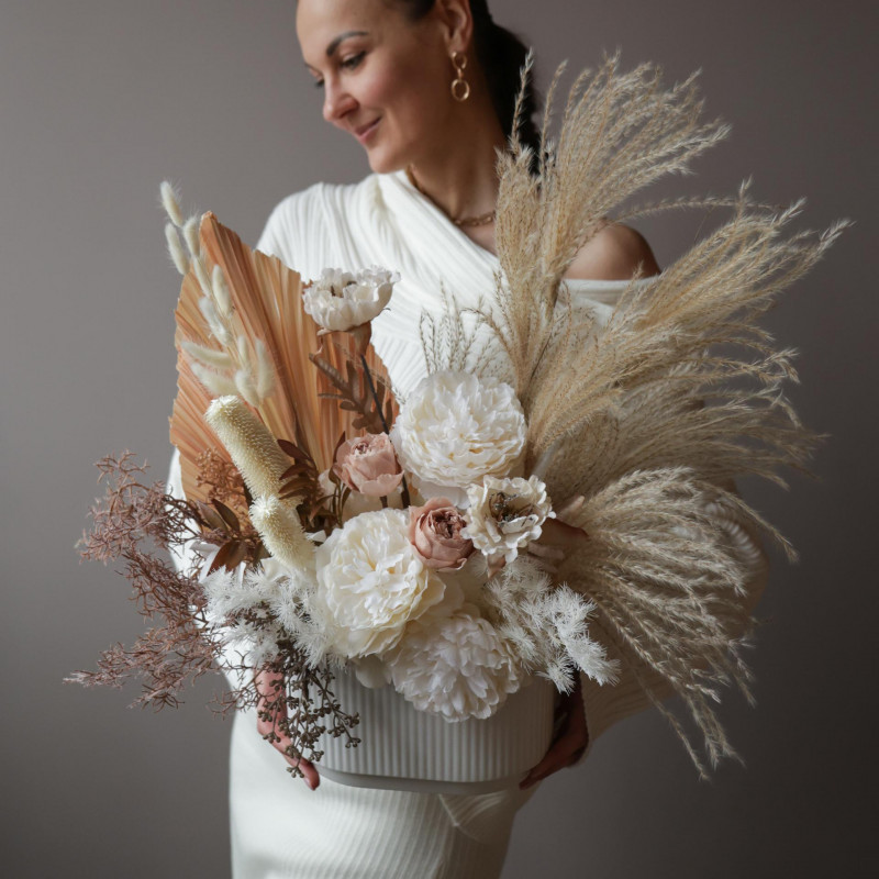 В коллекцию Ваби-Саби собраны авторские букеты из сухоцветов, стабилизированных цветов и искусственных премиум-цветов от флористов Тимьян. Изящные и эффектные, от средних размеров до WOW для ваших интерьеров. Букеты собраны в различных цветовых гаммах, подходят для стильных бизнес-простраств и домашних интерьеров. Практичное многолетнее украшение и чудесный подарок.