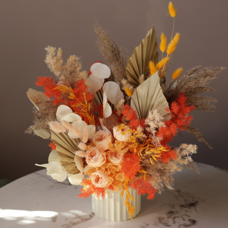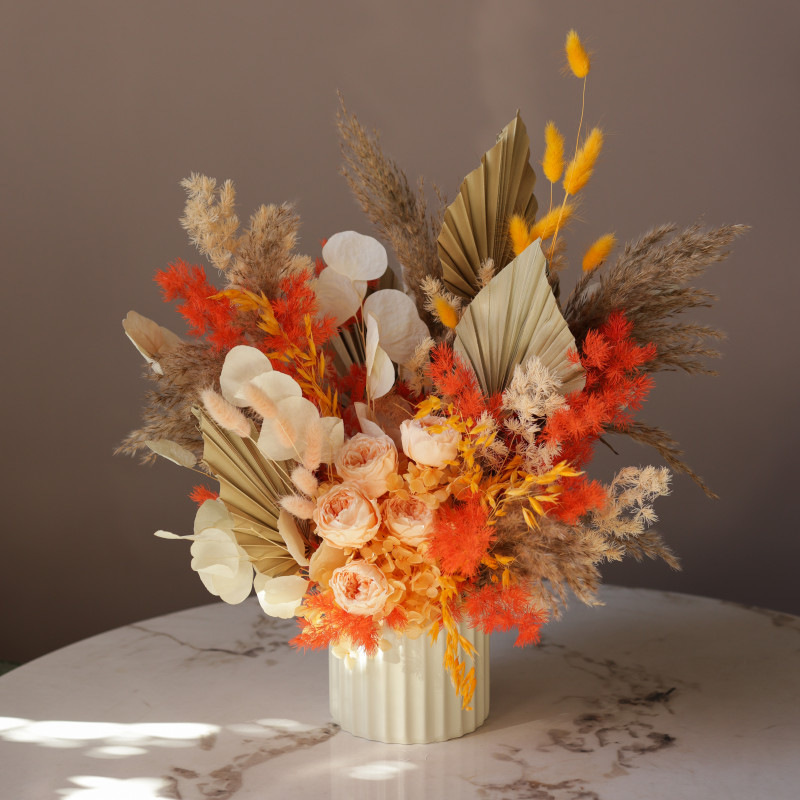 Пудрово-оранжевая настольная композиция в дизайнерской вазе
