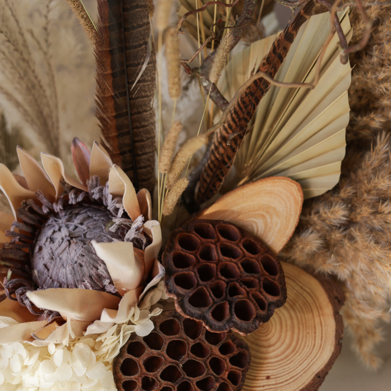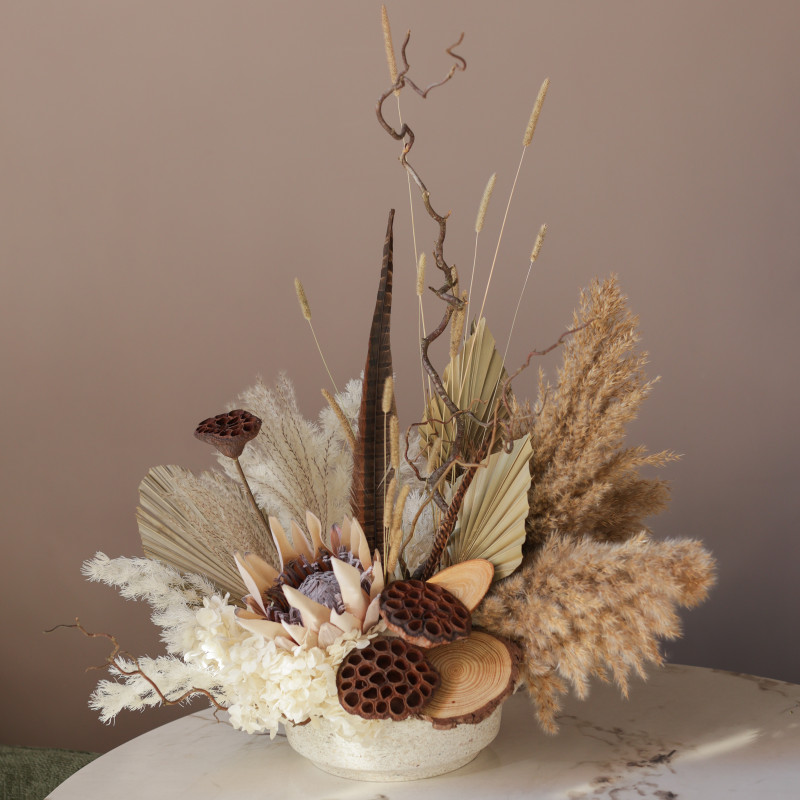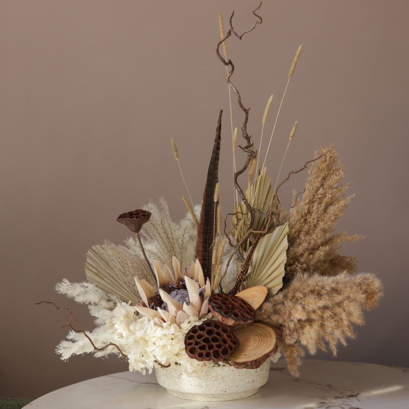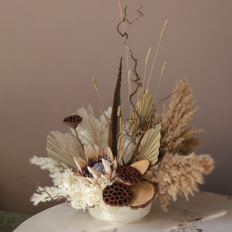 ✔ Сочетание стабилизированных сухоцветов, декоративных спилов