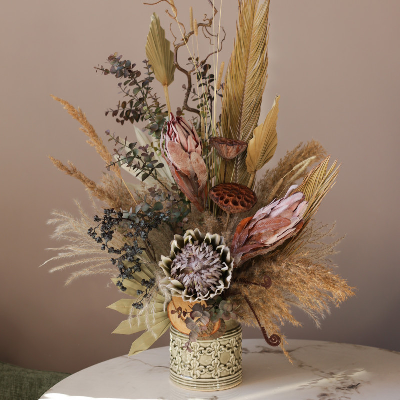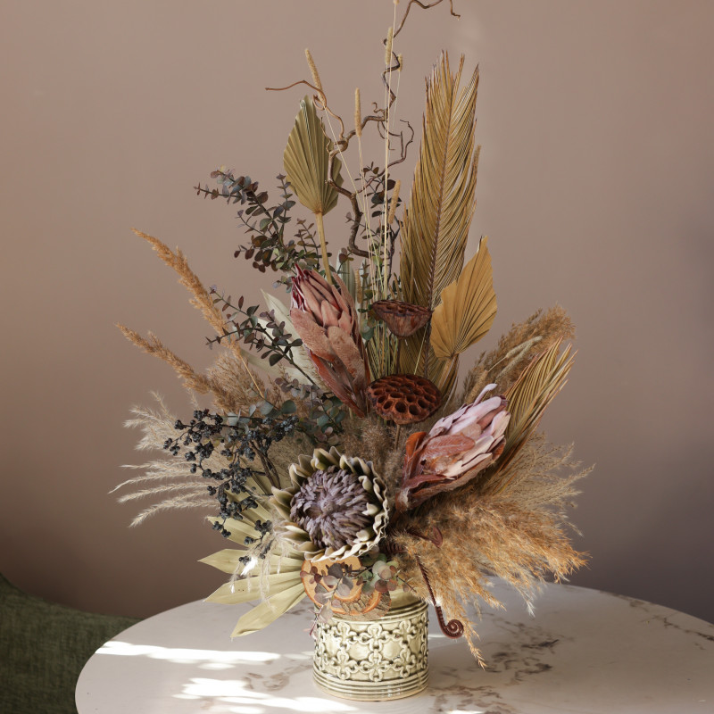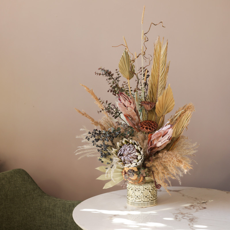 ✔ Сочетание стабилизированных сухоцветов и искусственных декоративных растений