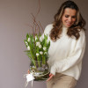 Авторская композиция из весенних цветов в дизайнерской вазе! Декорирована лентой.