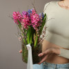 Авторская композиция из весенних цветов в дизайнерской стеклянной вазе! Декорирована лентой.