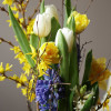 Авторская весенняя композиция из весенних цветов в дизайнерской стеклянной вазе! Декорирована лентой. Требует умеренного регулярного полива.