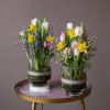 Авторская композиция из весенних цветов в дизайнерской вазе! Декорирована лентой.