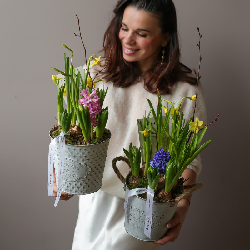 Важно: Сады из луковичных растений доставляются в стадии набора цвета или формирования бутонов. Это живые растения, которые продолжают распускаться и цвести после доставки.